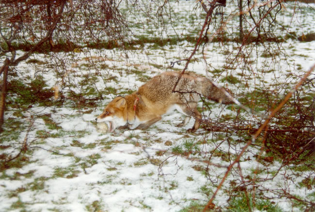 Tennisball hat genau die richtige Größe für ein Fuchsschnäuzchen.