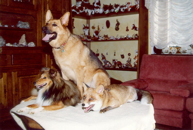 Mein Sheltiefreund "Zeus", meine >Tochter<, die Schäferhündin "Laika" und ich.